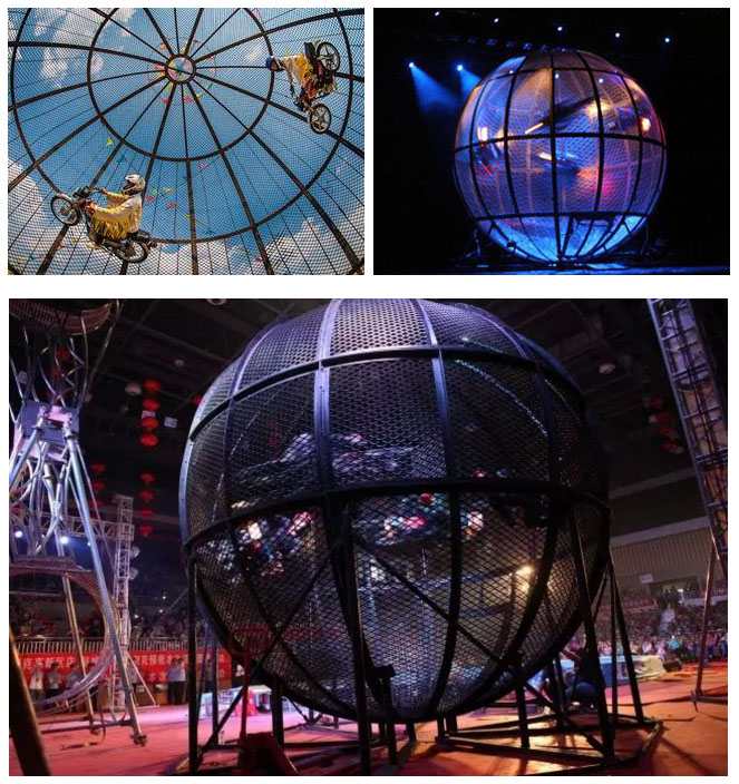 ● 2015年,他們再次創(chuàng)造了奇跡,在直徑6米的鋼球中12輛摩托車上下翻飛,來回穿梭超過30秒以上的高難度技巧動(dòng)作表演,再次打破了由他們自己創(chuàng)下的世界環(huán)球飛車記錄。